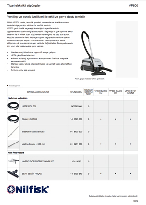 VP600 geniş özellik seçeneği ile istediğiniz spesifik temizlik uygulamalarına özel özelliği size sunabilir. Sağladığı bir çok fayda ve akılcı tasarımı ile bir Nilfisk ticari süpürgeden beklediğiniz her şeyi size sunar.