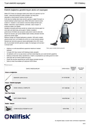 NILFISK GD5 BATTERY - Ticari Vakum Makineleri ÜRÜN ÖZELLİKLERİ