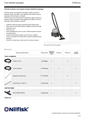 NILFISK VP300 ECO - Ticari Vakum Makineleri ÜRÜN ÖZELLİKLERİ